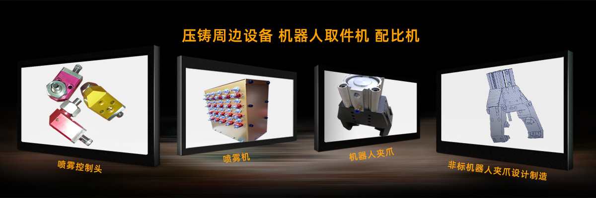 3.壓鑄周邊設備:脫模劑的噴霧機、噴霧控制頭、機器人夾爪、取件機、壓鑄機移門等!